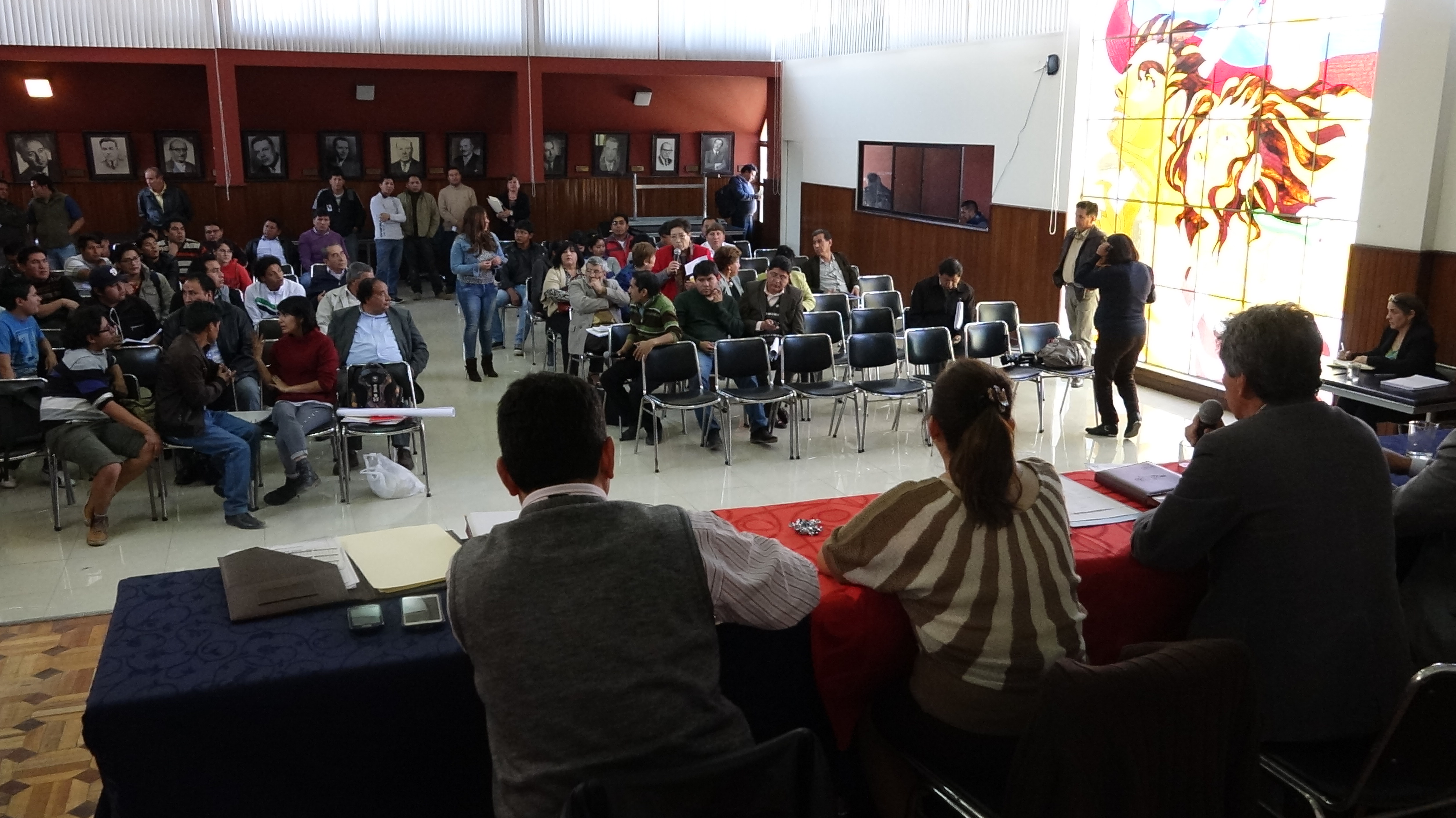 En el caso del universitario John Copaga se ratificó el aporte de 100 bolivianos por docente, 1 boliviano por estudiante, la contratación de Copaga como administrativo y el aporte de la dirección financiera del 20 al 50 por ciento.