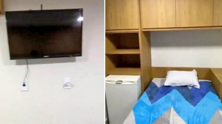 Una sala que tiene como todo mobiliario una cama individual, una pequeña mesa, un televisor y unas estanterías de madera, con paredes pintadas de color blanco y sin ningún cuadro ni adorno, según unas imágenes que ha difundido la propia Policía Federal.