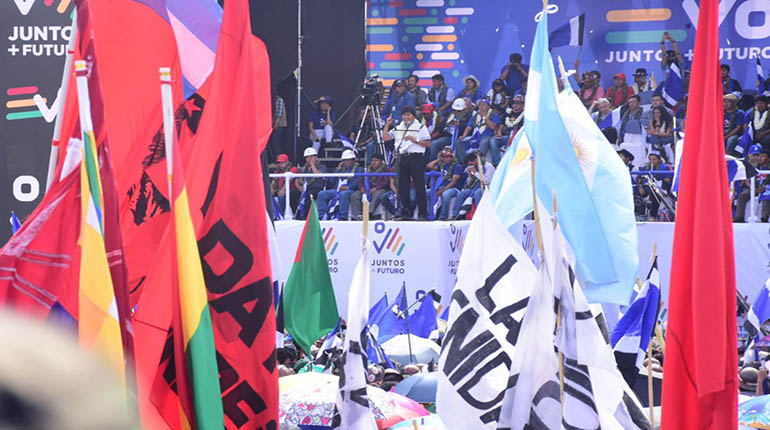 Sindicatos, sectores sociales, colectivos, interculturales, funcionarios y ciudadanos de diferentes partes de Bolivia asistieron al acto. Desde las 11 de la mañana se vio gran presencia de personas que terminaron de llegar a las 15:00.