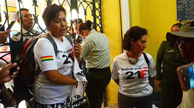 Los policías de la Gobernación de Cochabamba impidieron ayer el ingreso a las instalaciones a la asambleísta Lizeth Beramendi por vestir una polera del 21F.