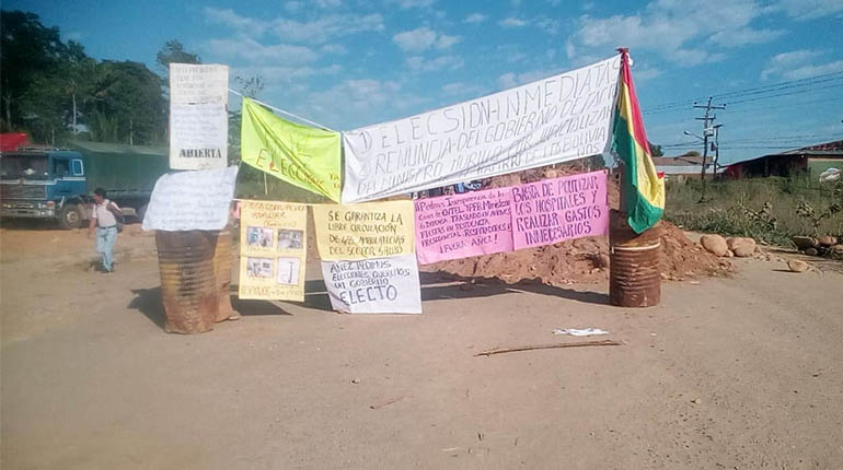 Los bloqueos de sectores afines al Movimiento Al Socialismo (MAS) continúan en los poblados de Yapacaní y San Julián (Santa Cruz), K’ara K’ara y Quillacollo(Cochabamba), Eucaliptus (Oruro), Copacabana (La Paz) y Norte de Potosí.