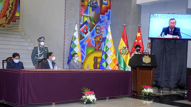 El Gobierno de Luis Arce recurrió a China para la adquisición de 500 mil dosis de vacunas anticovid, desarrolladas por el laboratorio Sinopharm, 100 mil de las cuales llegarán en concepto de donación, tras un rebrote del coronavirus. Se anunció su llegada al país antes de fin de mes, con la que se comenzaría la inmunización masiva de la población,