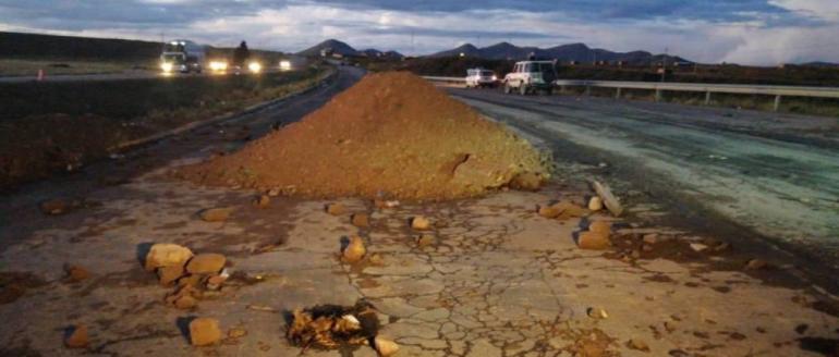 Pobladores de Caracollo, en la carretera Oruro-La Paz, cumplen este jueves su tercer día de bloqueo indefinido y exigen a las autoridades locales la construcción de una obra vial.