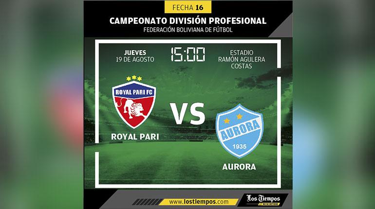 Aurora cayó por 1 gol a 0 frente a Royal Pari, esta tarde en duelo que se jugó en el estadio Tahuichi Aguilera de Santa Cruz, por la jornada 16 del Torneo Único 2021.