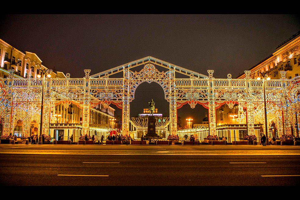 1. Adornos en arcos de una plaza de Moscú, Rusia.
