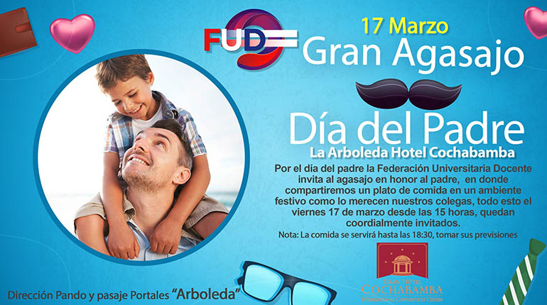 La Federación Universitaria Docente (FUD) de la UMSS, bajo el eslogan: “Feliz día papá, te mereces lo mejor”, obsequiará a sus miembros una botella de whisky escocés, “blend” (mezcla), Chivas Regal 12 años, edición especial 200 años este viernes 17 de marzo, en una cena de honor para su plantel con el propósito de celebrar a lo grande el Día del Padre.