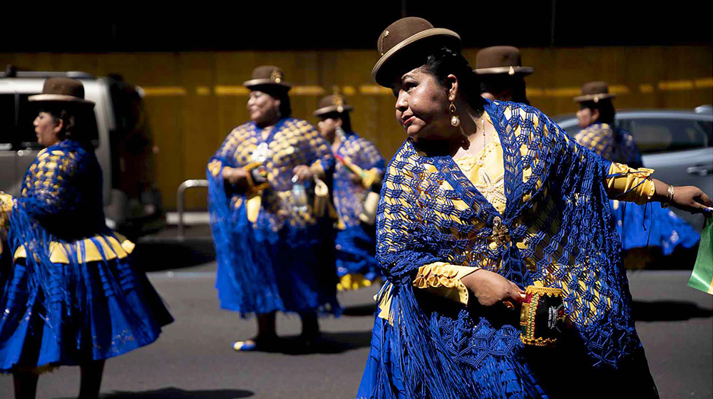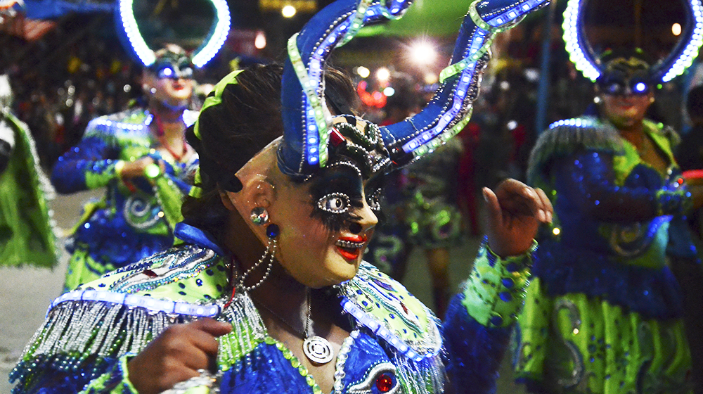 Los bailarines, acompañados de sus bandas, lucen coloridos y tradicionales trajes que ponen el toque de alegría a una fiesta que contempla elementos culturales y religiosos, propios de Bolivia. Es así que cientos de danzarines demuestran su devoción a la Virgen de Urkupiña.
